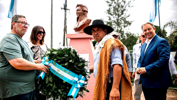 Durante la ceremonia, el jefe comunal acompañado por vecinos, instituciones locales, vecinos y funcionarios municipales colocó una ofrenda floral al pie del busto del brigadier Juan Manuel de Rosas y se sumó al minuto de silencio en homenaje a los patriotas que defendieron la Soberanía Nacional.