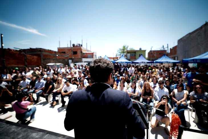 “Lo que estamos discutiendo no son teorías económicas, sino hechos concretos de la realidad: el Gobierno nacional tiene 80 obras de escuelas paralizadas en nuestra provincia”, sostuvo Kicillof y agregó: “Nosotros no gobernamos bajo esa lógica austríaca y libertaria: trabajamos para que aquí no haya un terreno baldío, sino una institución pública bonaerense que les permita a las familias del barrio soñar con un futuro mejor”.