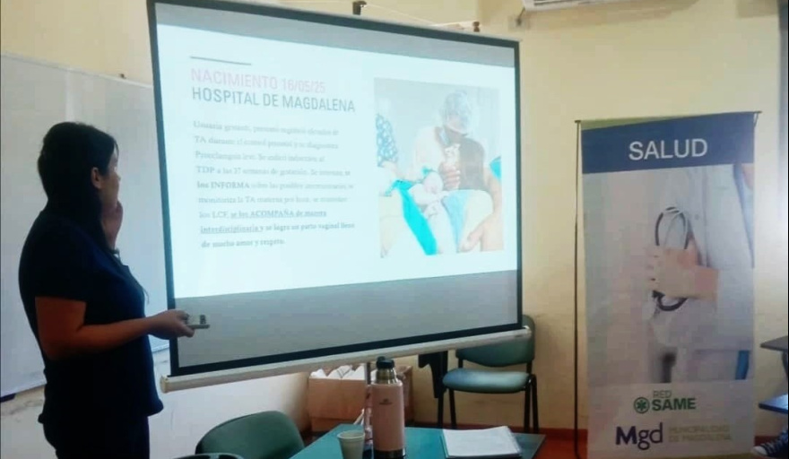 La presentación contó con la presencia del Director Médico del nosocomio, Dr. Sergio Fernández, y profesionales de los servicios de pediatría, obstetricia, enfermería, salud mental, traumatología, trabajo social, clínica médica y cirugía.