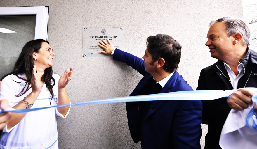 Este martes el gobernador de la provincia de Buenos Aires, Axel Kicillof, encabezó la inauguración de la nueva Escuela de Educación Especial Nº510 en el municipio de Almirante Brown, junto al director general de Cultura y Educación, Alberto Sileoni; y el intendente local, Mariano Cascallares. Además, acompañado por el ministro de Seguridad, Javier Alonso, entregó patrulleros y motos para fortalecer la seguridad en el distrito.