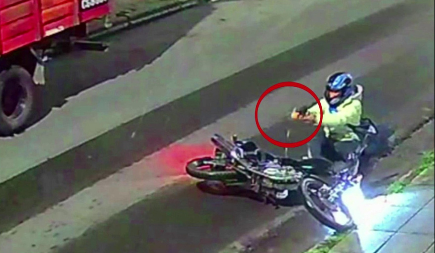 Gracias a que utilizaba el casco y porque estaba bien ajustado, el joven policía se repuso de la caída con asombrosa velocidad y de la cintura extrajo el arma reglamentaria con la que repelió el criminal ataque.