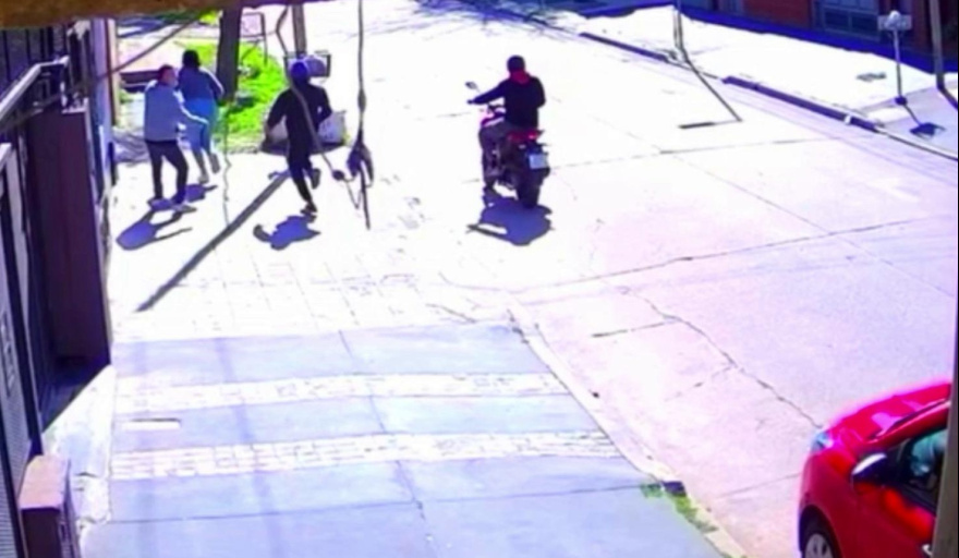 El primero ocurrió cerca de las 10, cuando un hombre y la hija caminaban por la calle Comandante Franco. En el primer video que acompaña esta nota se observa que la mujer escuchó la llegada de las motos, miró hacia atrás y advirtió al padre que algo malo podía pasar.