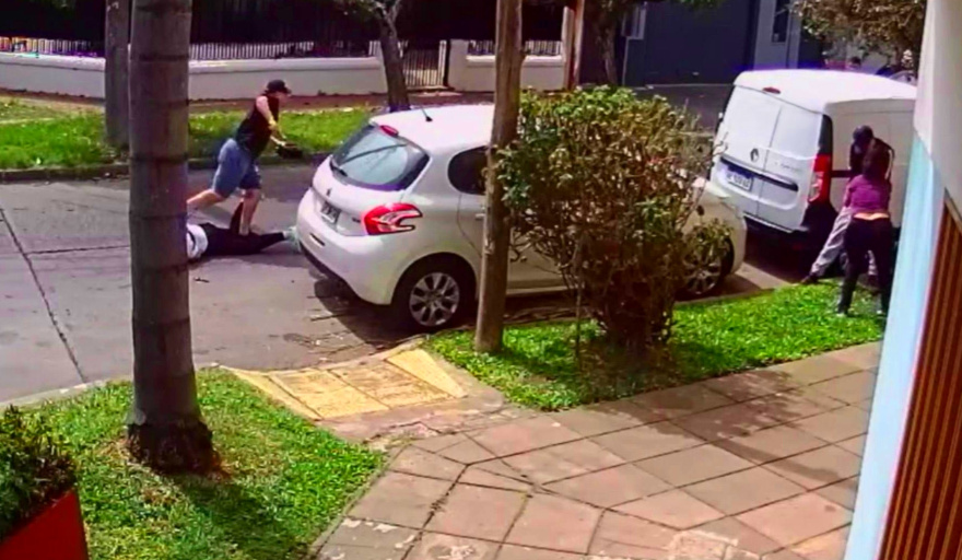 En el video se observa que Macarena cayó al pavimento y el cobarde que la perseguía fue sobre ella para arrebatarle los elementos de valor. Al mismo tiempo la amiga forcejeó con el segundo ladrón que la empujó contra un auto estacionado y le arrancó la riñonera en la que tenía dinero, el teléfono celular y documentación.