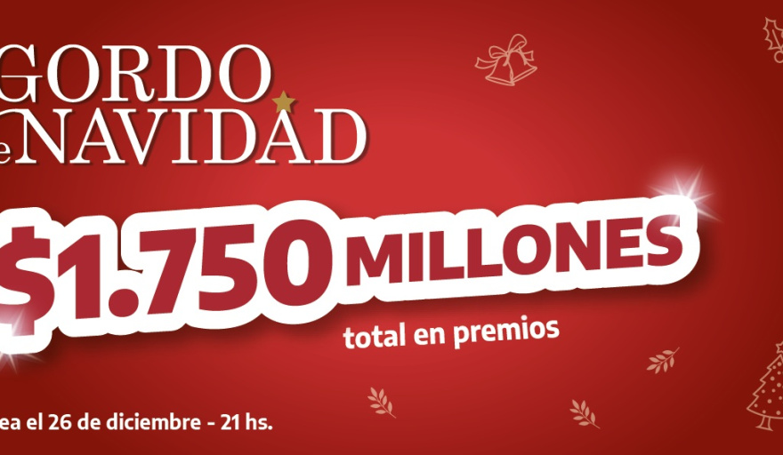 El sorteo del Gordo de Navidad, se realizará el día 26 de diciembre a las 21hs en el Salón de Sorteos y será transmitido en vivo por el canal de Youtube de Loteria de la Provincia.