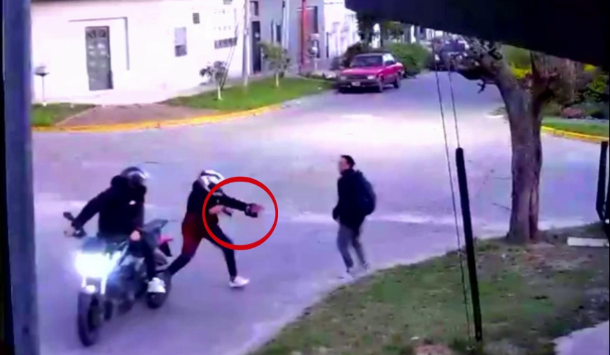 En el video incluido en esta nota se observa la secuencia completa y comenzó cuando la víctima se despedía de la familia a la que acaba de visitar. A continuación, cuando cruzaba la calle Berutti, fue sorprendido por los motochorros que arribaron a toda velocidad por Marconi.