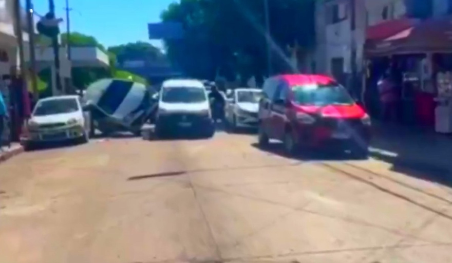 La intención de los sujetos recorrió menos de media cuadra y acabó cuando chocaron de manera brutal contra la parte trasera de un utilitario Renault detenido por el tránsito.