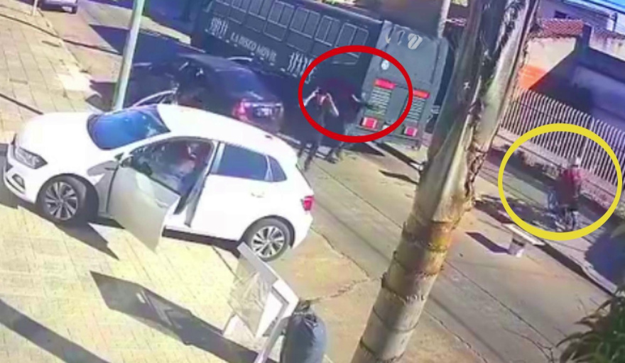 Las cámaras de vigilancia instaladas sobre la calle Alvear, registraron el momento en que los ladrones llegaron a bordo de un Chevrolet color negro y tres de los ocupantes se abalanzaron sobre el VW Gol Trend en el que permanecía la mujer.