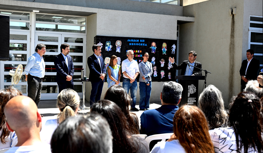 El gobernador de la provincia de Buenos Aires, Axel Kicillof, encabezó este martes la inauguración formal del Jardín de Infantes Nº 919 en el municipio de Necochea, donde además puso en funcionamiento las instalaciones de la Comisaría 2ª de Quequén. Fue junto al director general de Cultura y Educación, Alberto Sileoni, quien está atravesando sus últimos días de gestión luego de presentar la renuncia; el intendente local, Arturo Rojas; y la directora de la institución educativa, Eva Peralta.
