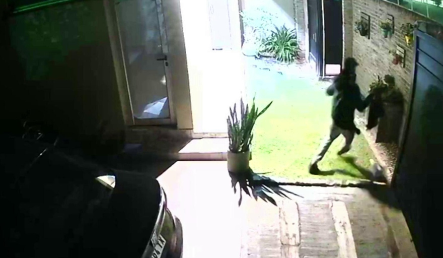 El rastrero permaneció alrededor de 20 minutos hasta que se decidió a ingresar a la casa tras forzar una puerta trasera. Luego de varios intentos consiguió su objetivo pero la sirena de la alarma se activo al instante y apuró el desenlace.
