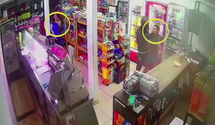 Al mismo tiempo uno de los maleantes saltó el mostrador y amenazó al encargado, luego lo llevó a la trastienda y lo golpeó para intimidarlo. Con la escena controlada, saquearon el cajón del dinero y juntaron los teléfonos celulares que desbloquearon para vaciar las billeteras virtuales.