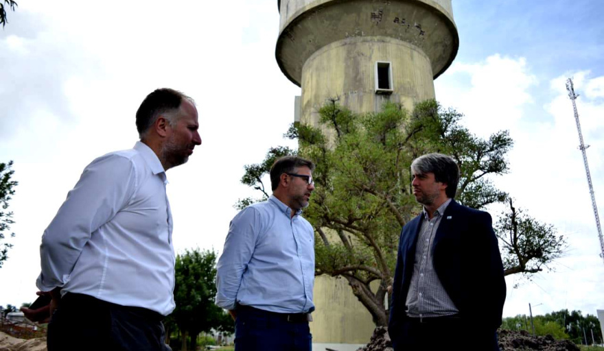 El intendente de Magdalena, Lisandro Hourcade, recibió este miércoles a Hugo Obed, presidente de ABSA, para supervisar el avance de las obras que se están llevando adelante en el distrito para mejorar el servicio en la localidad de Atalaya.