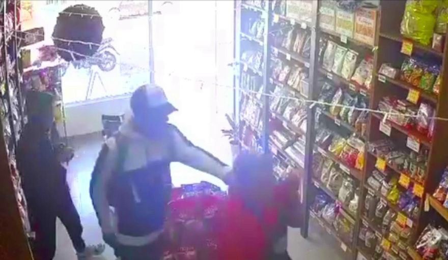 Una cámara de vigilancia instalada en el local registró el ingreso de un hombre joven que le pidió un paquete de galletitas. La mujer se acercó a una estantería a buscar la mercadería y en ese momento apareció el cómplice que se la abordó amenazante.
