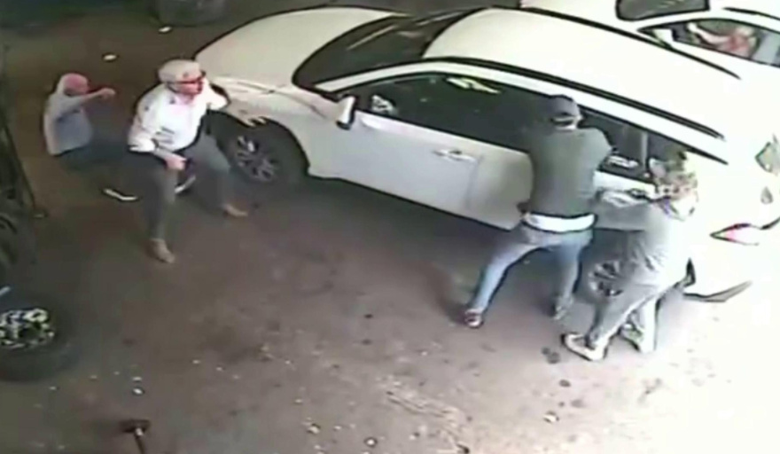 En las imágenes incluidas en la nota se observa que mientras aguardaban a ser atendidos en el garaje del comercio, se les acercó un hombre que tanteó la puerta trasera del rodado buscando abrirla. Momentos después, con el ingreso del cómplice al recinto, empujó al enfermero y al padre, rompió la ventanilla con una punta y escapó con el bolso cargado de efectivo.