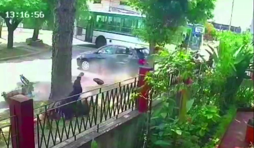 El lamentable y evitable suceso ocurrió alrededor de las 13:15 y quedó registrado por la cámara de vigilancia instalada en una vivienda sita sobre la Calle 839.
