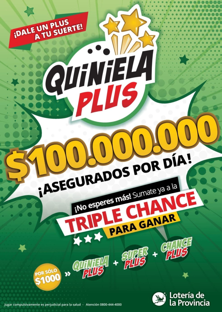 La Quiniela Plus se sortea de lunes a sábados a las 21 horas, en simultáneo con la Quiniela nocturna. Todos los sorteos se pueden seguir por el canal de Youtube de Lotería de la Provincia: CLIC AQUÍ