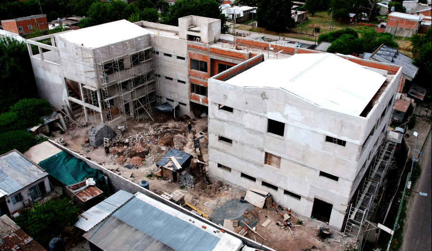 Cabe señalar que, previo al inicio de los trabajos, se realizó la demolición de una antigua estructura escolar existente en el predio y el cegado de pozos, tareas necesarias para generar las condiciones adecuadas para la nueva construcción.