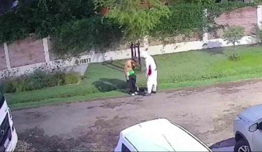 Uno de los muchachos reaccionó de inmediato y corrió para escapar, el amigo no lo intentó e instantes después fue abordado por el rastrero encapuchado que en primer lugar le exigió que le entregue la camiseta de fútbol. A continuación, a pesar de los ruegos del desesperado joven, le arrebató el teléfono, el pantalón y las zapatillas.