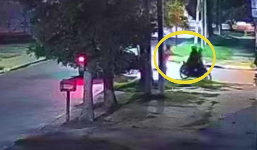 En ese momento el tercer delincuente se acercó a la moto y en pocos segundos la puso en marcha para escapar del lugar.