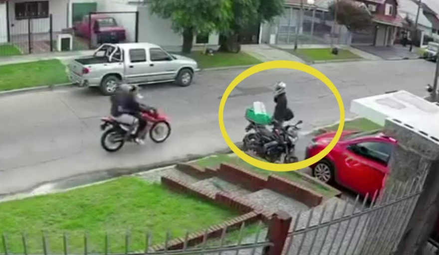 En el video se observa que en primer lugar la víctima les entregó las llaves de la moto y que, de manera sorpresiva, no le sustrajeron el rodado. Los rastreros le sacaron el casco, una riñonera donde tenía el teléfono celular y documentación, también un bolso que llevaba en bandolera.