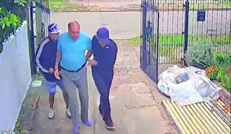 Hugo llevó a la esposa al trabajo en la localidad de Monte Grande y cuando regresó a la vivienda le llamaron la atención dos jóvenes que utilizaban viseras y descendieron de un automóvil que estacionaron en la intersección más cercana.